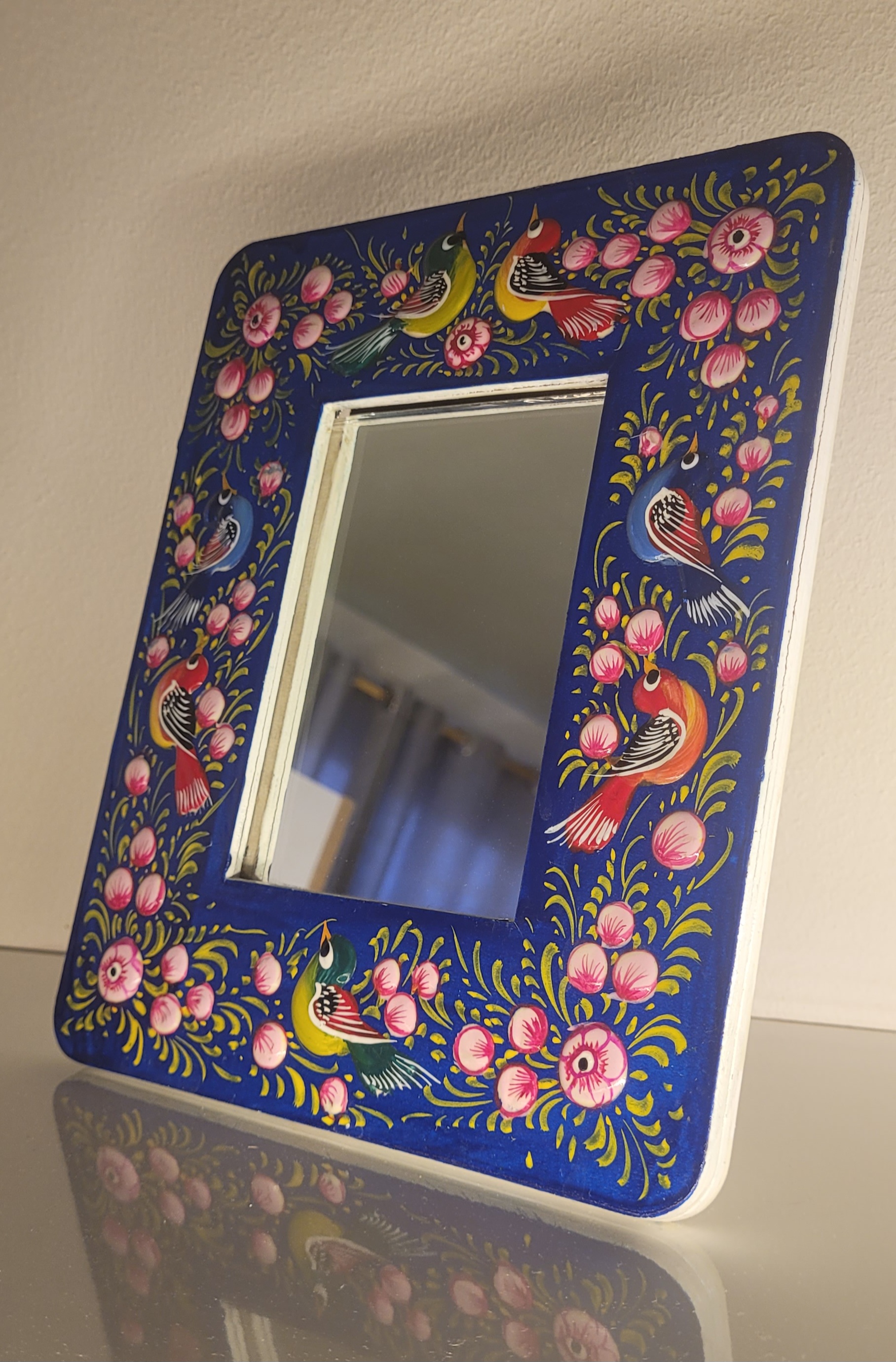 قاب ایینه نقاشی گل و مرغ رو میزی